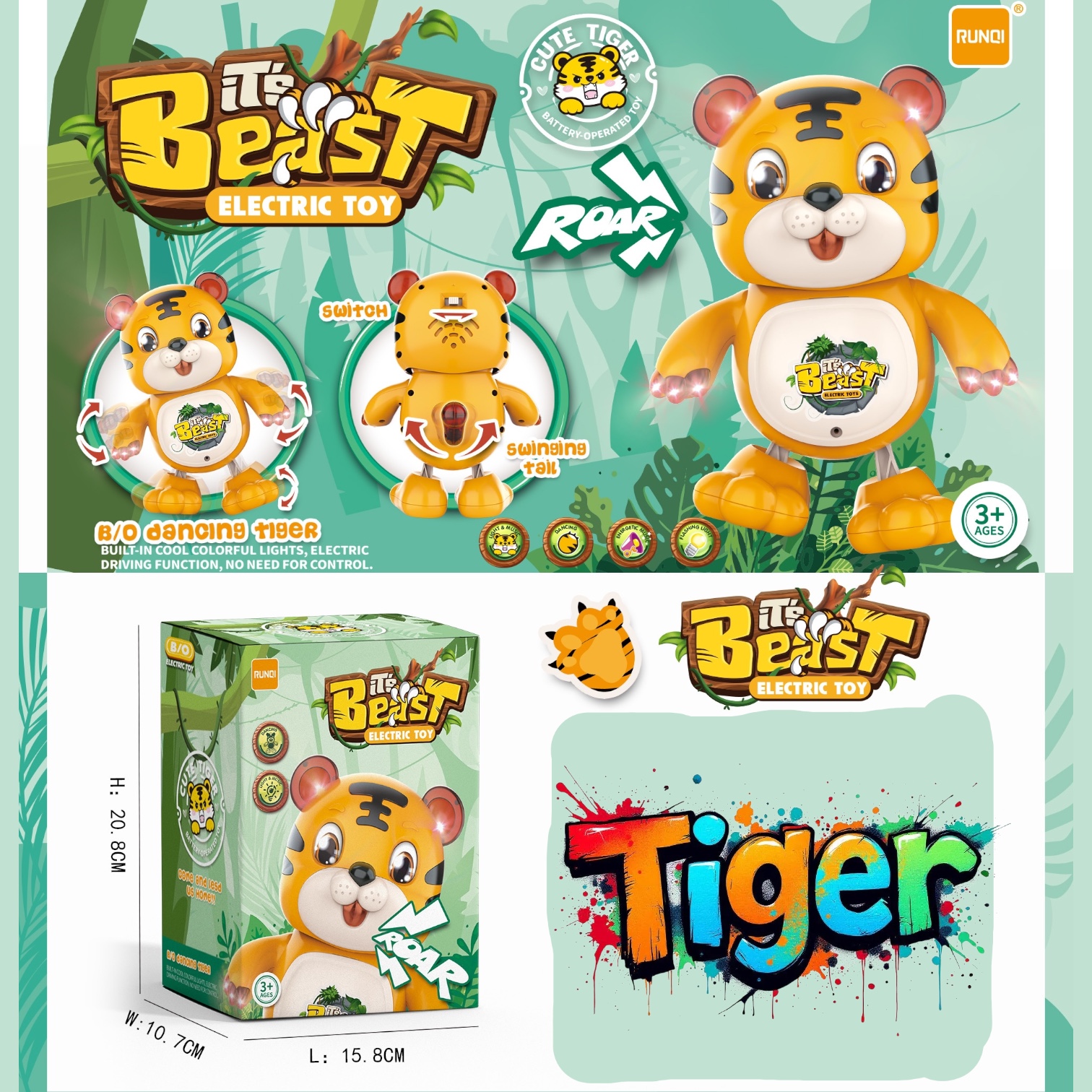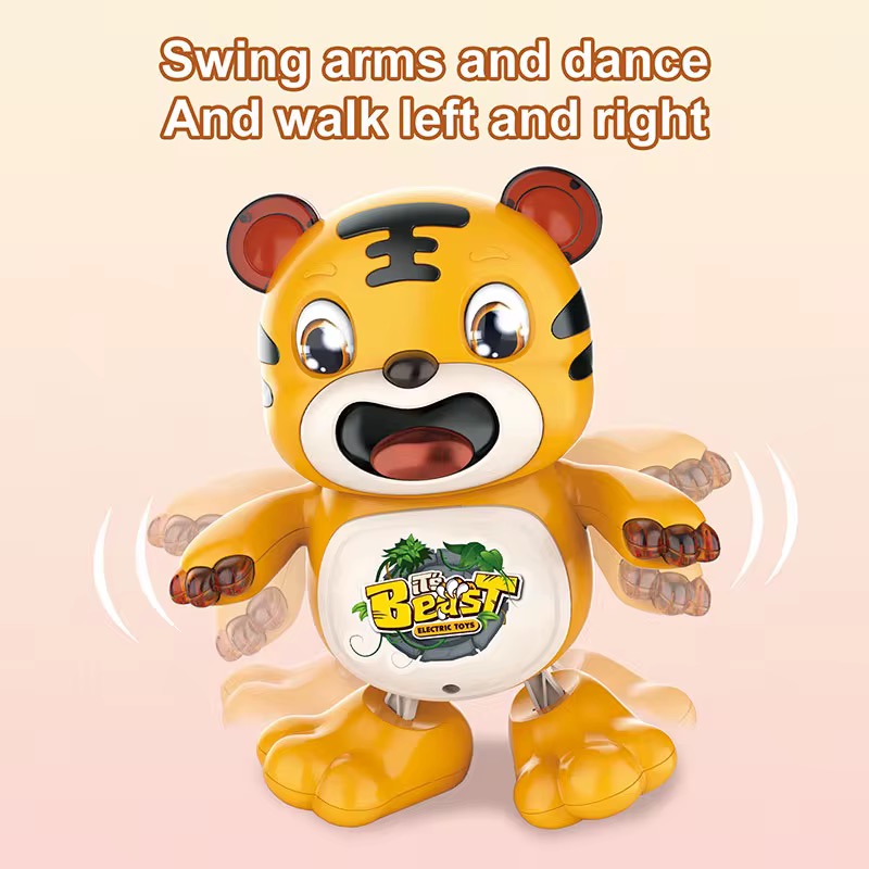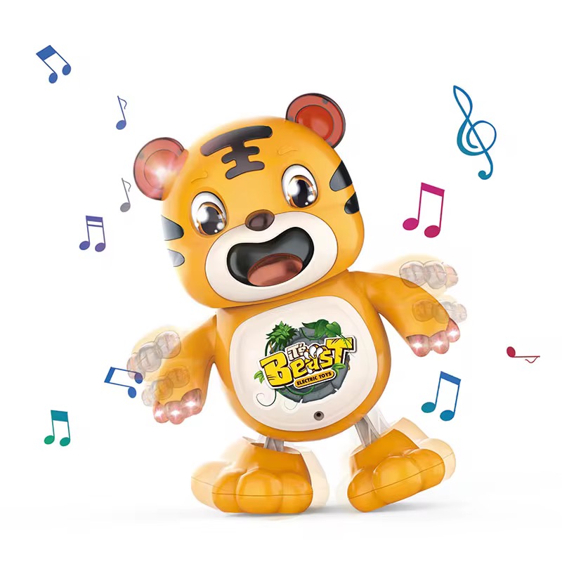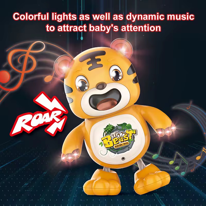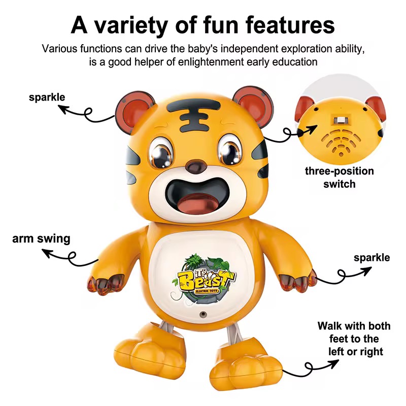 يتميز النمر بتصميم لطيف وجذاب، وعند الضغط عليه يصدر أصوات موسيقية مرحة تُسعد الأطفال وتشجعهم على الحركة والتفاعل.