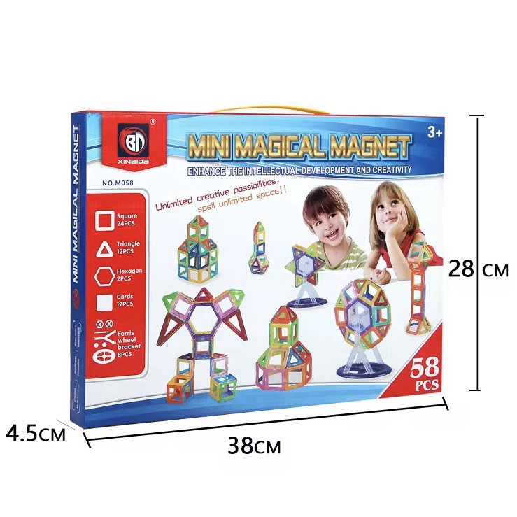 لعبة تركيب مغناطيس مميزة مكونة من 58 قطعة، تتيح للأطفال بناء أشكال هندسية ممتعة وتصميم مدن وملاهي خيالية بكل سهولة. تساعد على تنمية الإبداع والتفكير المنطقي والمهارات الحركية، مع تصميم آمن وألوان جذابة تناسب جميع الأعمار