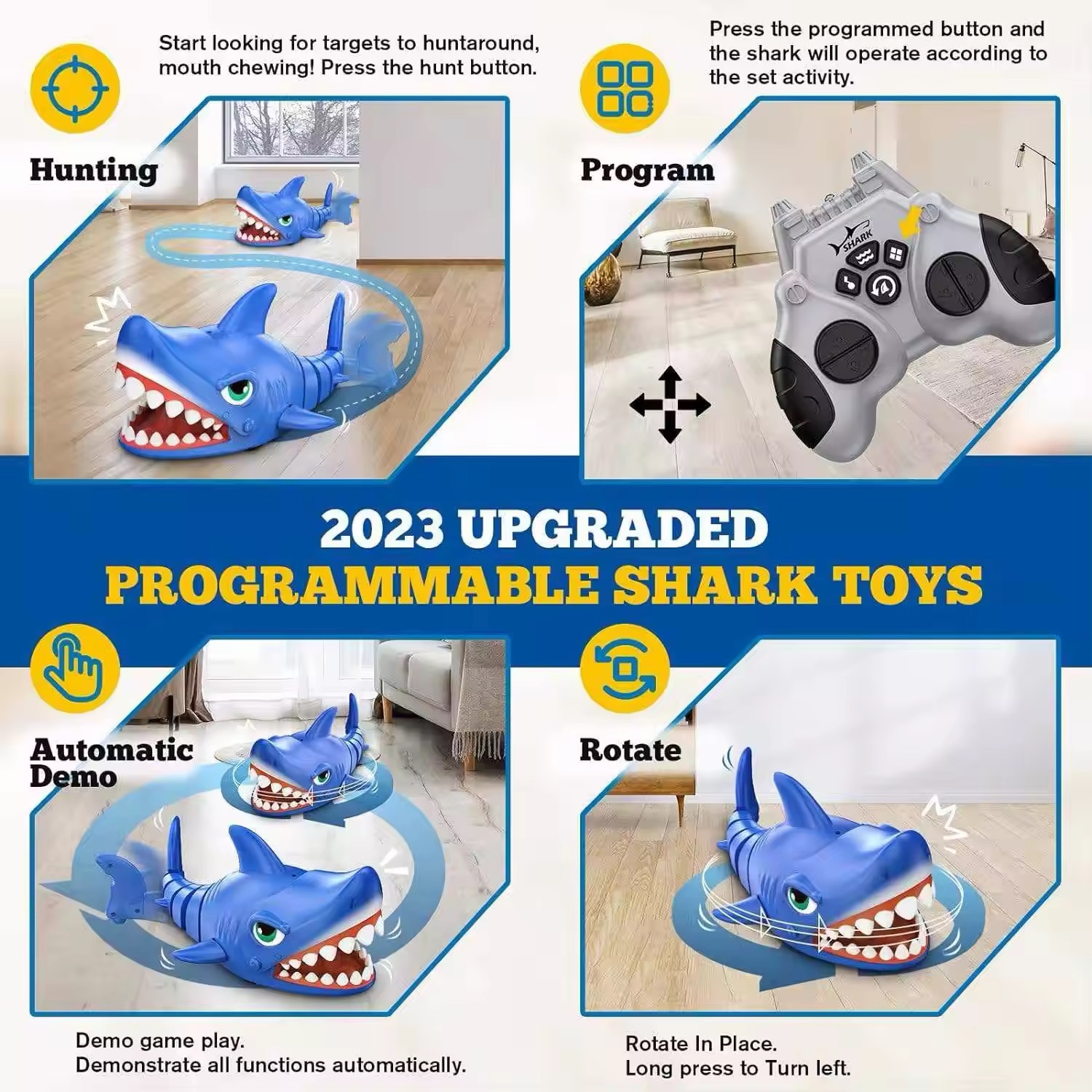 لعبة مبتكرة على شكل قرش تتحرك بسلاسة على الأرض لتمنح الأطفال تجربة مليئة بالمرح والإثارة. تصميم واقعي مع حركات تفاعلية تجعل اللعب أكثر متعة داخل المنزل 🎮🦈