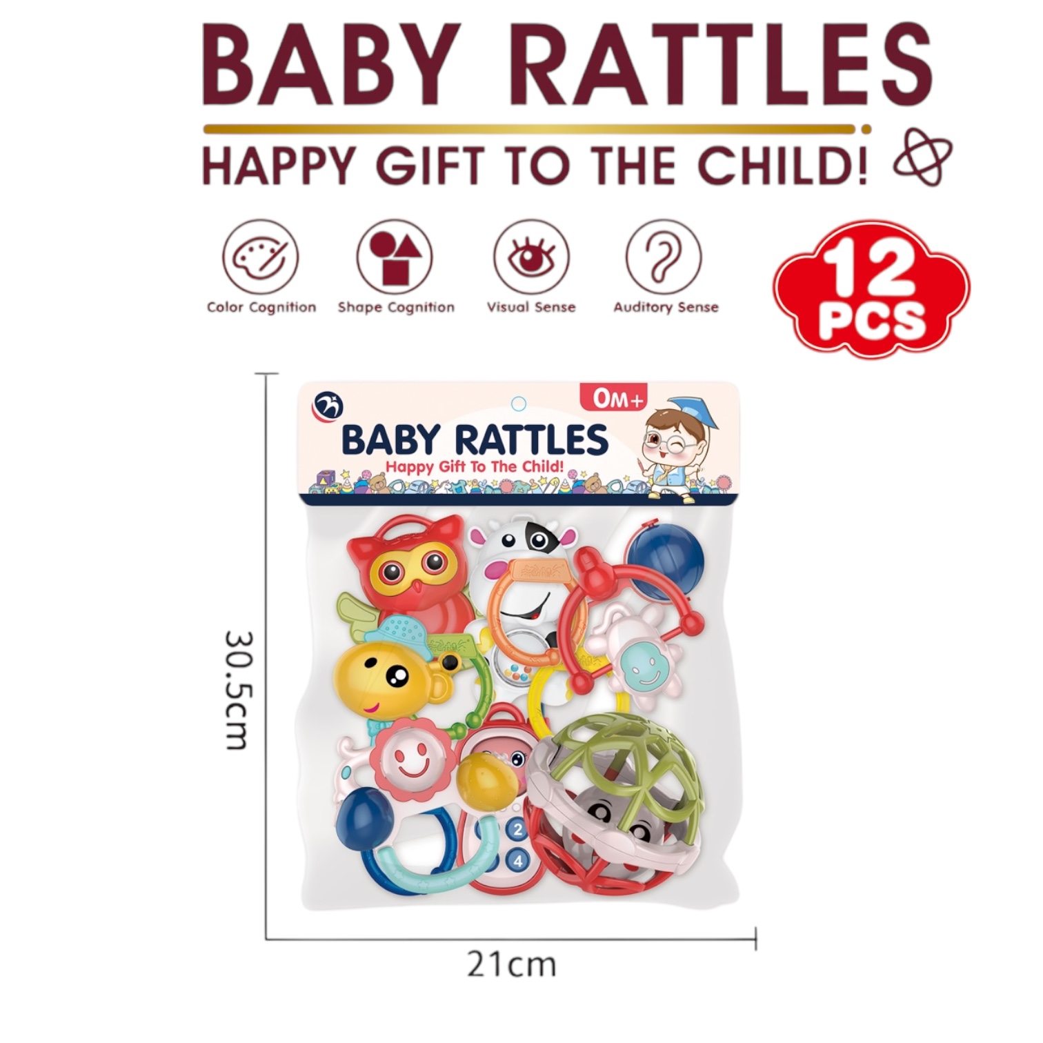 مجموعة قرقاشة للبيبي مكوّنة من 12 قطعة بتصاميم وألوان جذابة، مصممة خصيصاً لتنمية حواس الطفل. تساعد على تحفيز السمع واللمس والبصر، وتناسب مرحلة التسنين بمواد آمنة وخفيفة وسهلة الإمساك