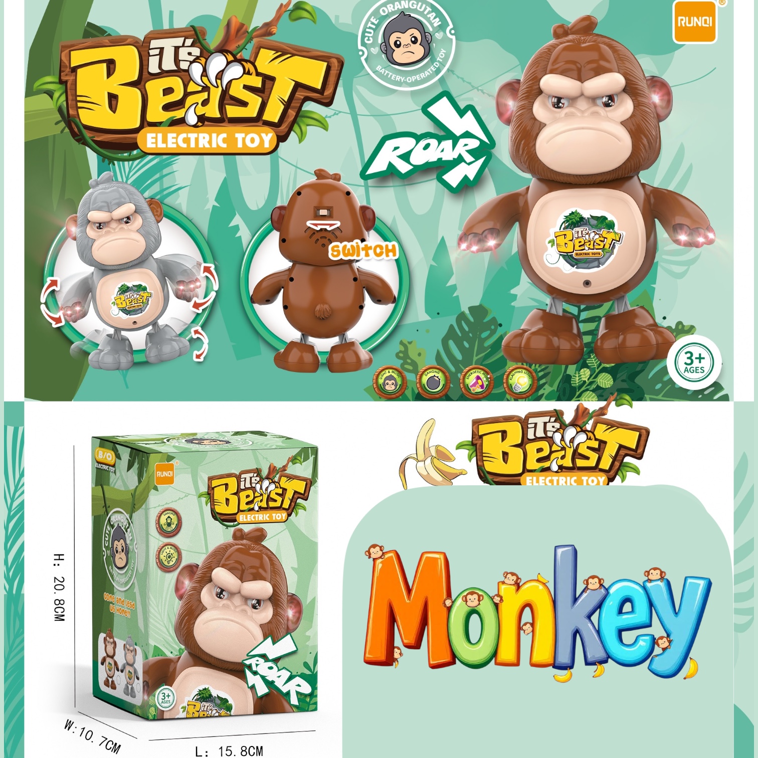 🐵 لعبة القرد الموسيقي المضيء – صديق المرح الصغير! 🎶✨