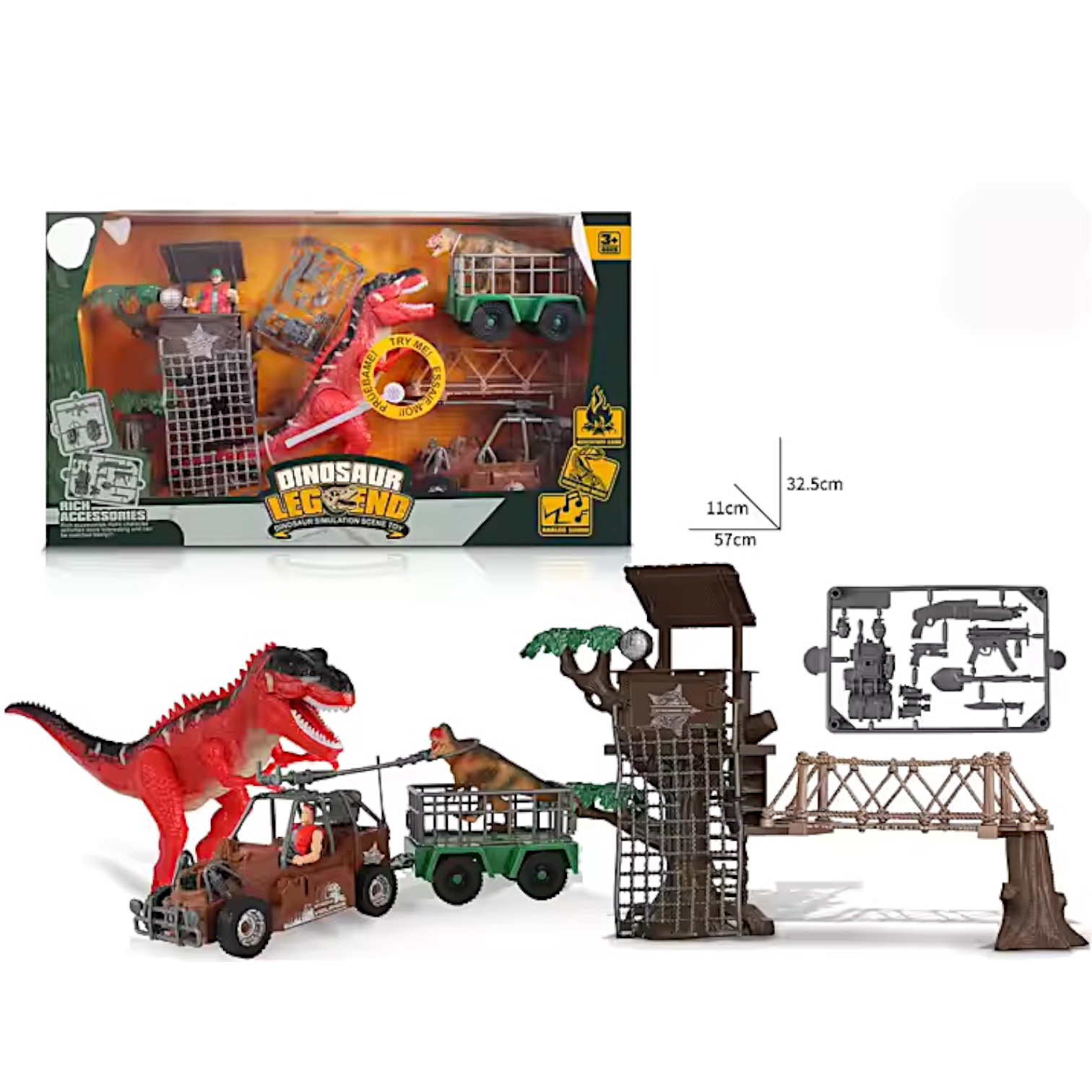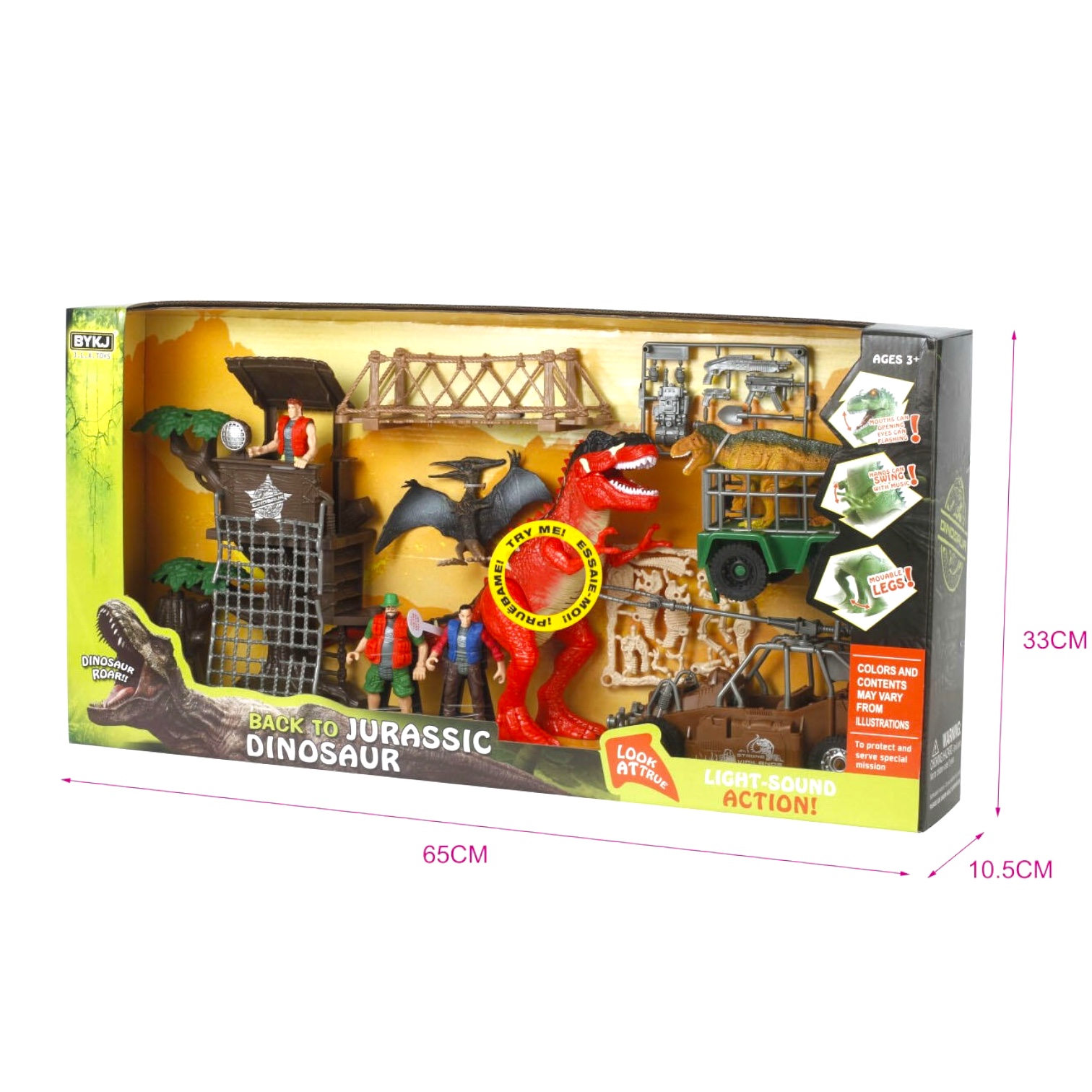 الشخصيات: مجسمات ديناصورات بأحجام وأشكال مختلفة