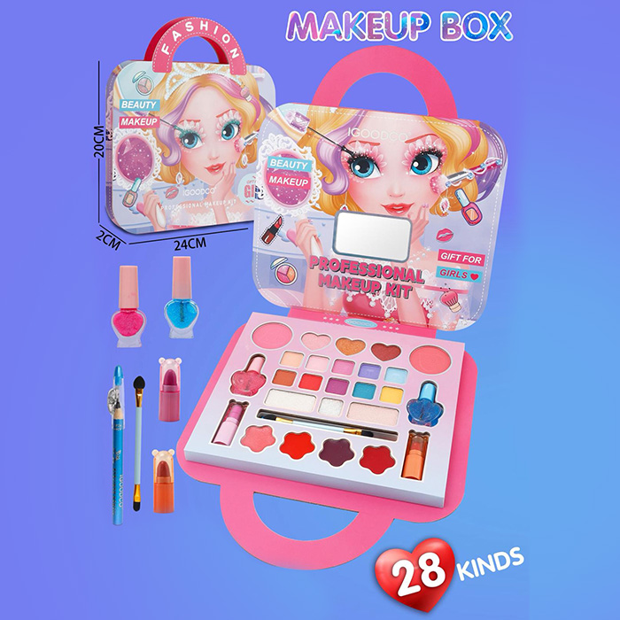 مجموعة مكياج متكاملة تمنح الأطفال تجربة تزيين ممتعة ومليئة بالألوان! تحتوي على 28 لون مختلف مع مناكير، حمرة شفاه، وفرش وأدوات لتطبيق سهل وإبداع لا حدود له 💄