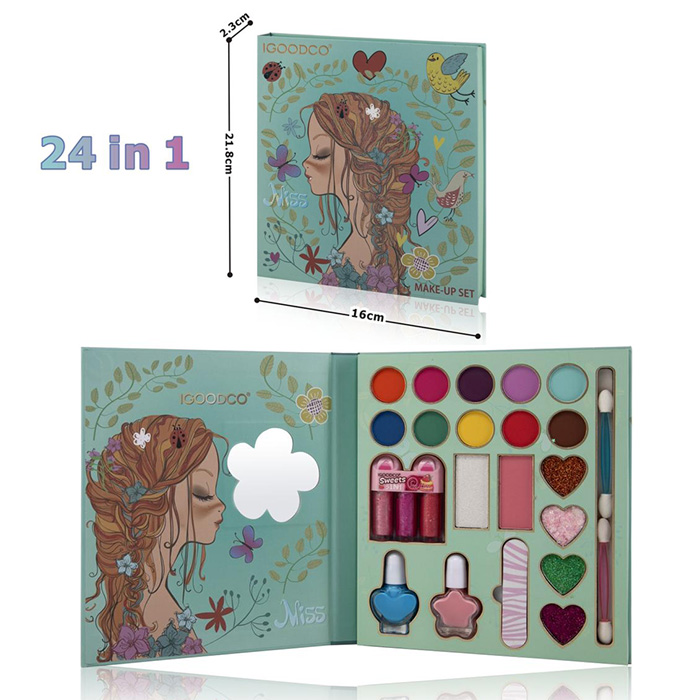مجموعة مكياج متكاملة تمنح الأطفال تجربة تزيين ممتعة ومليئة بالألوان! تحتوي على 24 قطعة متنوعة تشمل ألوان جذابة مع مناكير، حمرة شفاه، وفرش وأدوات تساعد على الإبداع واللعب التخيلي 💄
