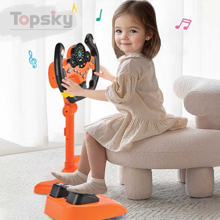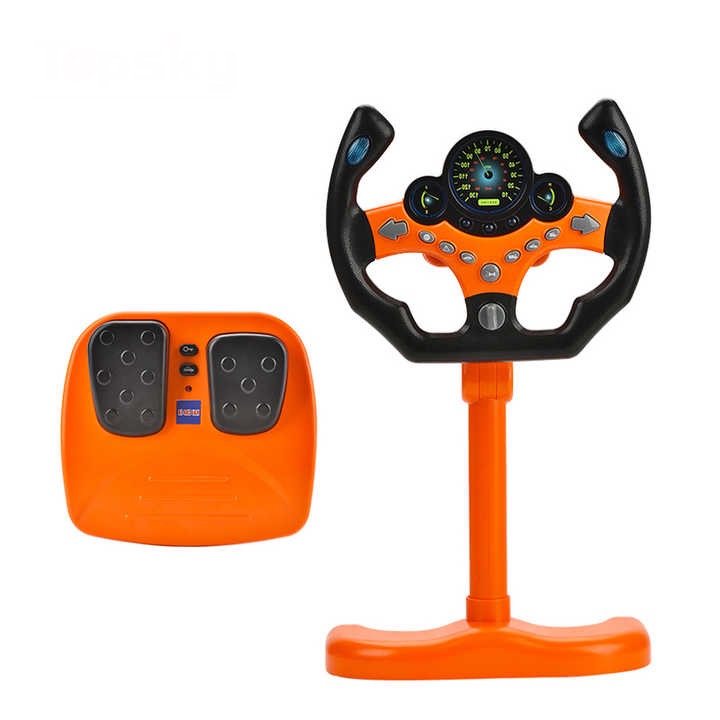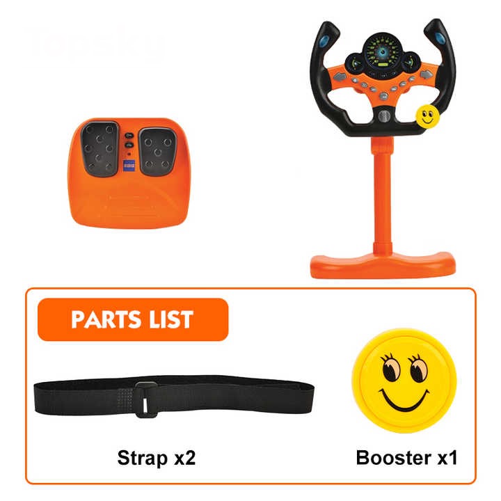تصميم يشبه عجلة القيادة الحقيقية: مزودة بمقود يمكن لفّه يمينًا ويسارًا ليمنح الطفل إحساسًا واقعيًا بالقيادة.