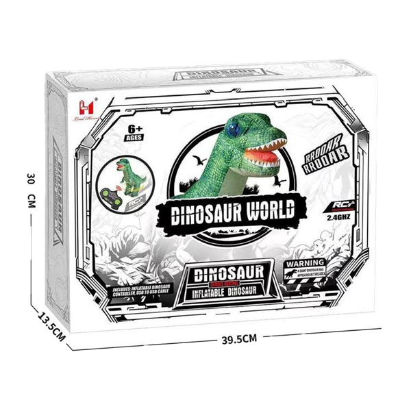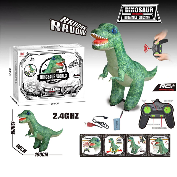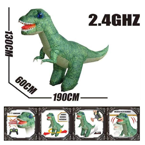 ديناصور عملاق يتم نفخ الهواء فيه عن طريق الريموت وافراغ الهواء عن طريق الريموت تحكم ريموت كامل يصل الرتفاع الى 130 سم و العرض الى 190 سم