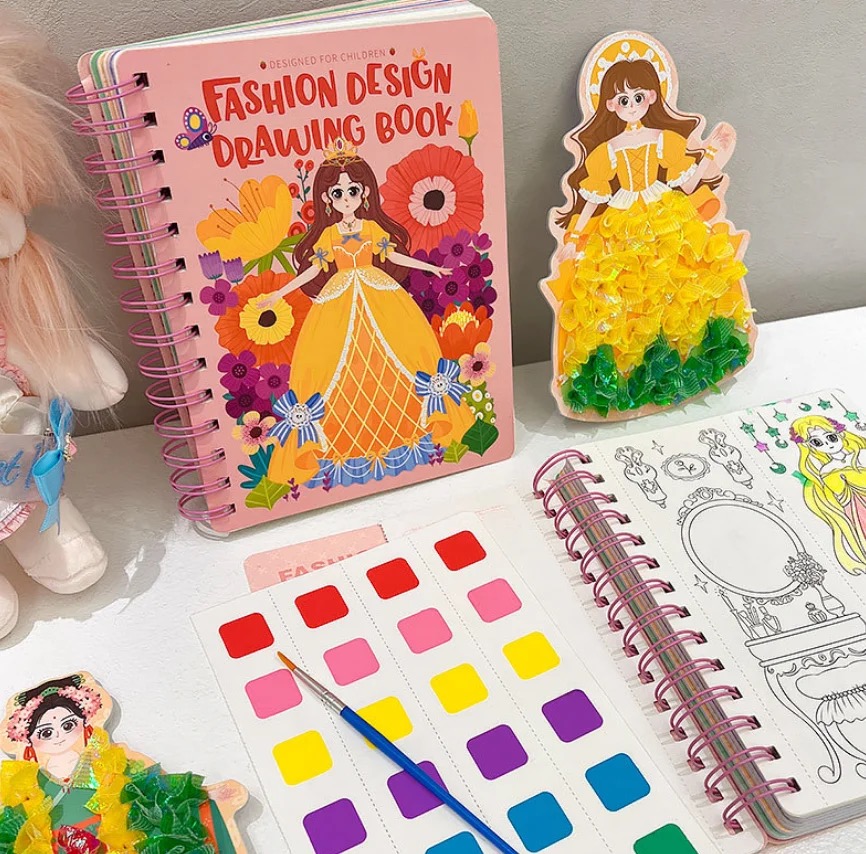 دفتر الاحلام مجموعة من لوحات الرسم و لوحات تزيين القماش مع مجموعة من الالوان و ادوات التلوين