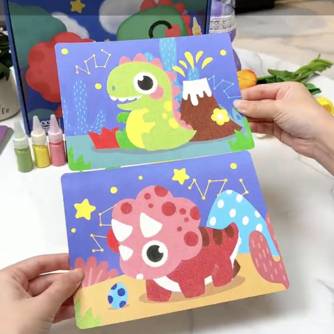 ألوان رملية مع لوحات تعليمية للأطفال هي مجموعة فنية رائعة تهدف إلى تعزيز الإبداع والتعلم بطريقة ممتعة.